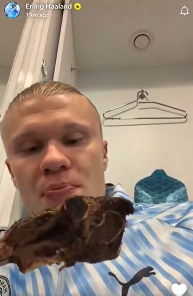 Người hâm mộ không còn lạ lẫm với hình ảnh này, bởi Haaland nổi tiếng là cầu thủ cực kỳ chú trọng chế độ dinh dưỡng và thường xuyên nạp năng lượng bằng các loại thịt giàu protein sau những màn trình diễn đỉnh cao.