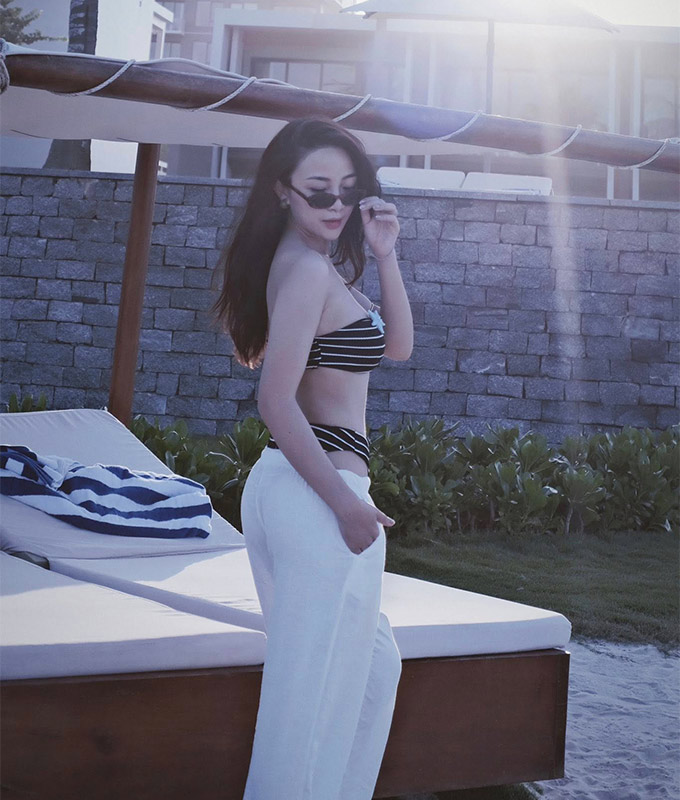 Trong những hình ảnh được chia sẻ, Nhật Linh diện thiết kế hai mảnh kẻ sọc đen trắng cổ điển, khéo léo khoe trọn những đường cong gợi cảm và vòng eo săn chắc. Bài đăng nhanh chóng nhận được hàng nghìn lượt yêu thích và bình luận, trong đó đa phần bày tỏ sự ngưỡng mộ trước khả năng giữ gìn vóc dáng đáng kinh ngạc của cô dù đã trải qua hai lần sinh nở. Nhiều người hâm mộ đã không ngần ngại “xin bí quyết” để có được thân hình chuẩn như bà mẹ hai con.