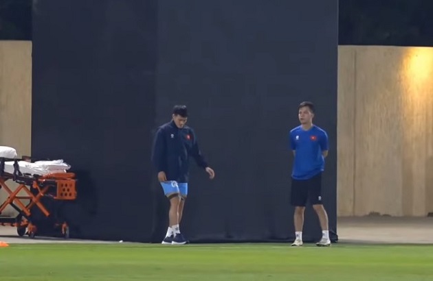 Tuy nhiên, chân sút thuộc biên chế PVF-CAND chưa thể tham gia các bài tập đối kháng hay chiến thuật cùng nhóm đồng đội như Đình Bắc hay Văn Khang. Thay vào đó, anh phải tập riêng ở một góc sân dưới sự giám sát chặt chẽ của bác sĩ đội tuyển.