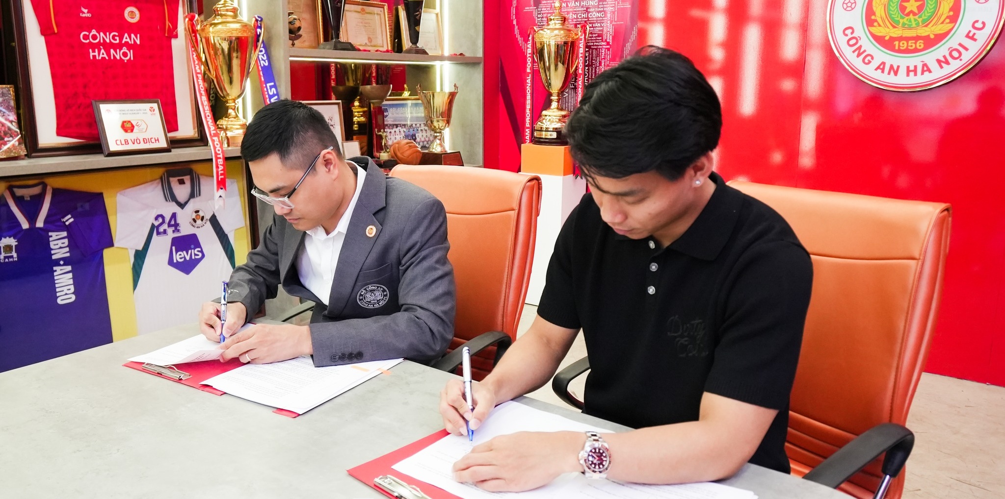 Phụ kiện này của anh đã gây chú ý và là một trong những điểm nhấn ở buổi lễ vừa qua. Trên trang Fanpage, phía CLB CAHN thông báo về việc này khi cho biết: “Hậu vệ Vũ Văn Thanh đã đặt bút ký vào bản hợp đồng mới, kéo dài đến năm 2028.
